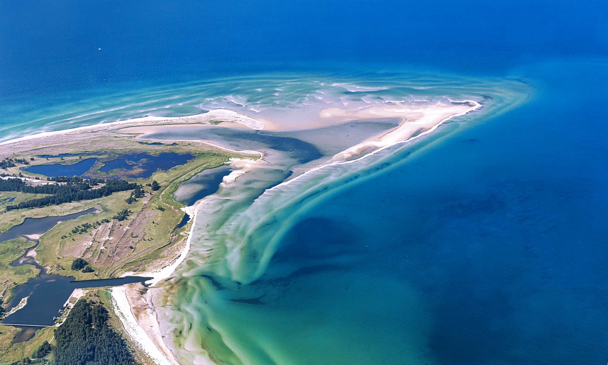 Vom Darßer Ort aus kann man ebenso zum Weststrand laufen der am schönsten ist, wo der Wald entlang läuft oder entlang des ehemaligen Nothafens (Ottosee) und über den Campingplatz zu den weißen weiten Dünenstränden des Nordstrandes.