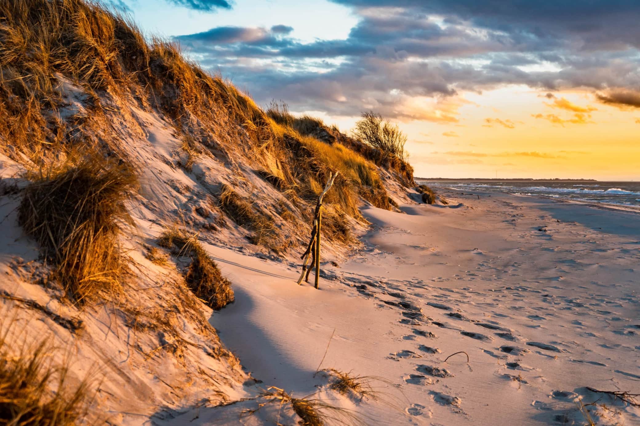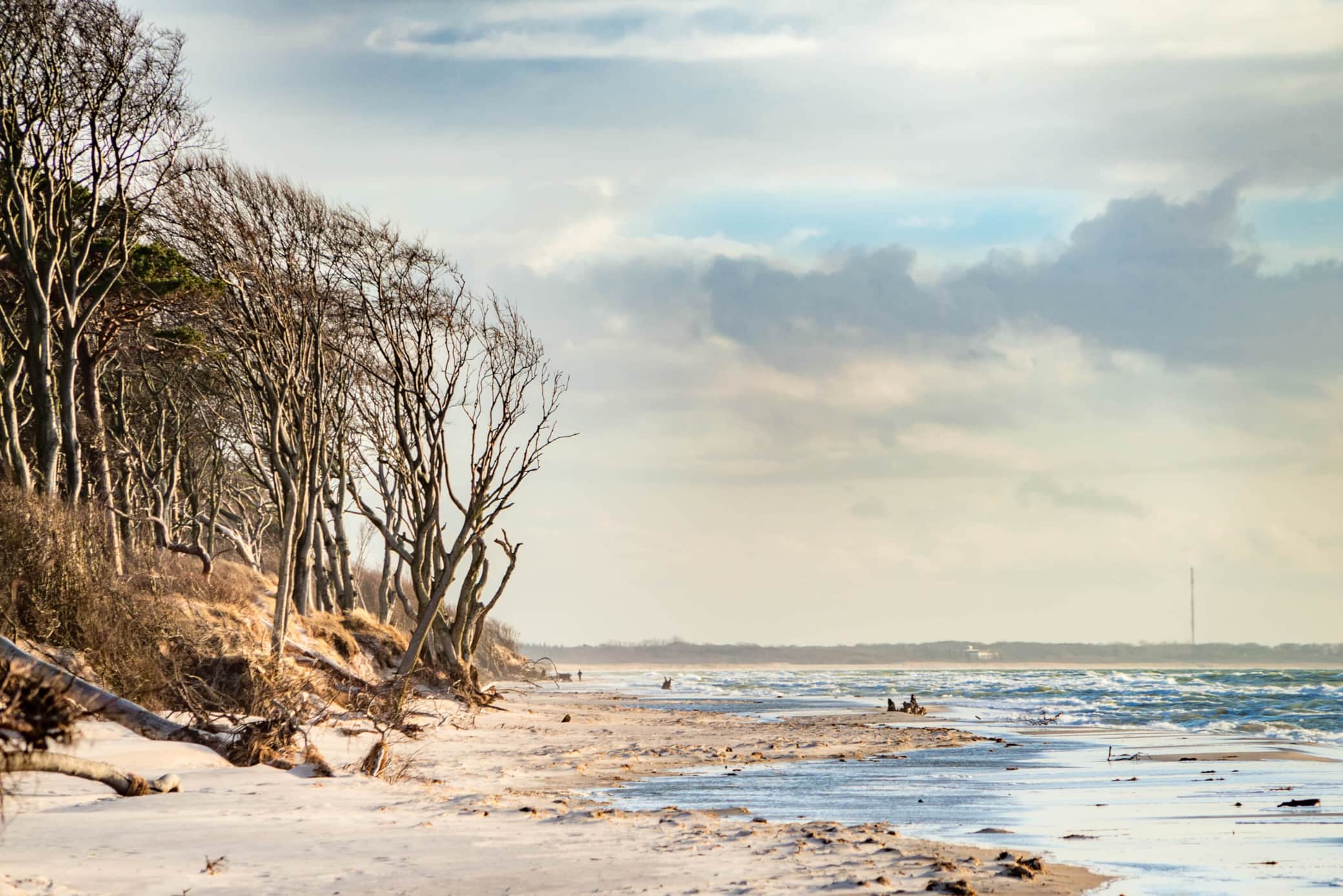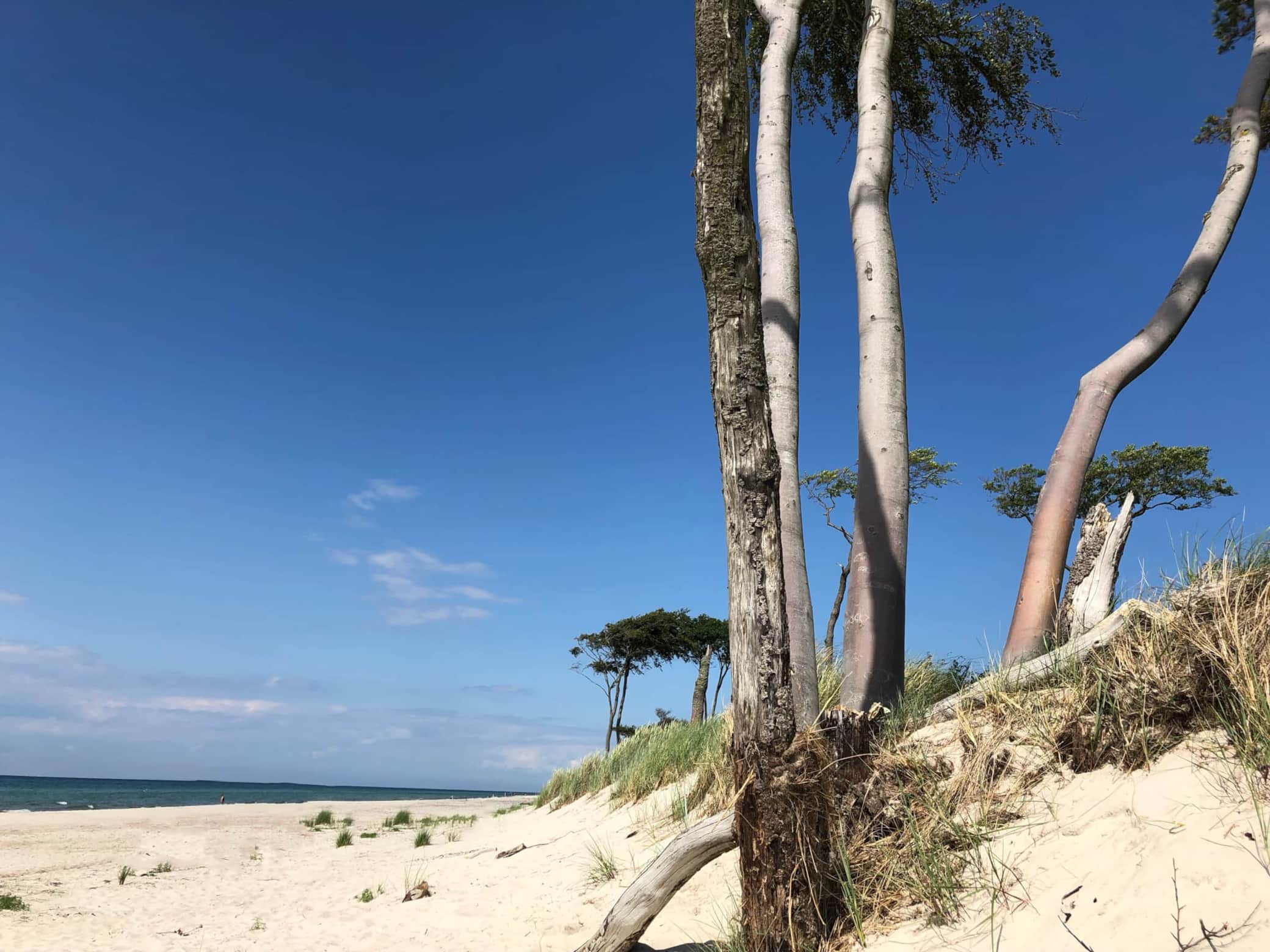 Der Weststrand wurde unter die 10 schönsten Strände weltweit gekürt und das zu Recht. Wildromantisch liegt der endlos lange Strand versteckt hinter dem Naturschutzgebiet vom Darßer Urwald. Ca. 6km von unseren Ferienhäusern entfernt erreichen Sie den traumhaften Strand am besten mit den Fahrrädern quer durch den urwüchsigen Wald. Wer laufen will schafft die Strecke bis zum Strand in ca. 1h15min. Sie können aber auch mit der Pferdekutsche oder der Bimmelbahn zum Darßer Ort fahren. Alternativ können Sie den Weststrand auch mit dem Auto erreichen. Hierfür fahren Sie Richtung Ahrenshoop zum Parkplatz 3 Eichen, der sich mitten im Wald befindet und laufen von dort ca. 15 Minuten zum Strand.