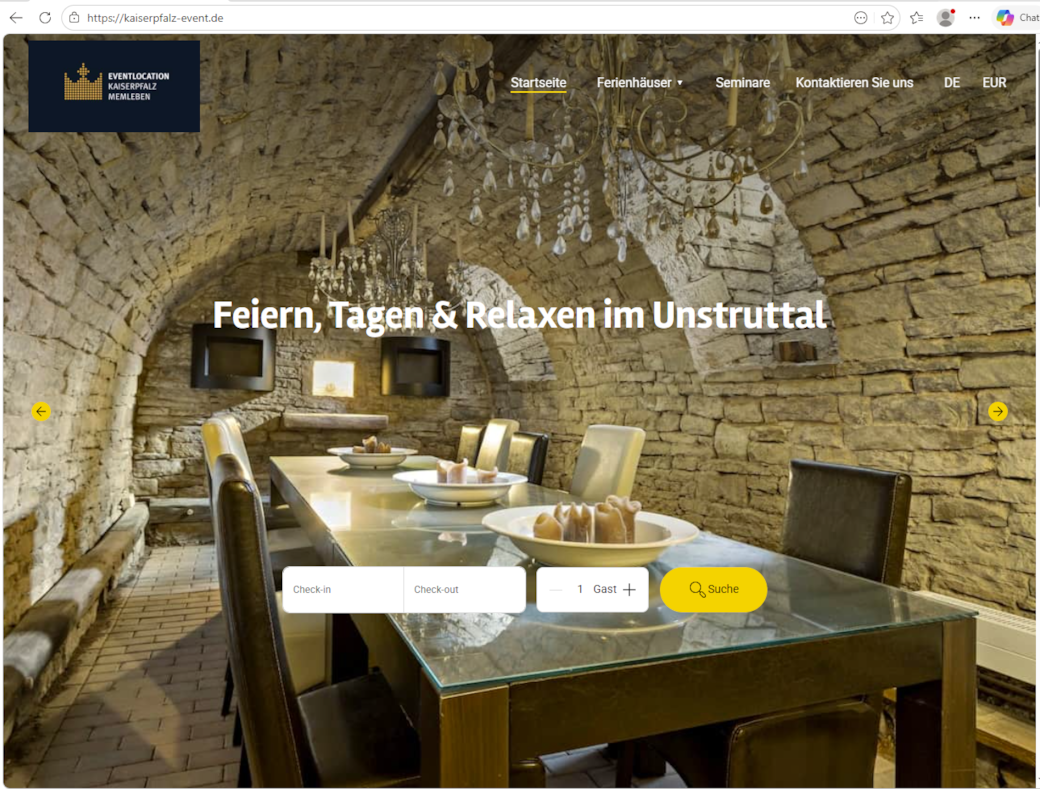 Sie suchen eine Eventlocation in Mitteldeutschland? Dann sind Sie in der Kaiserpfalz Memleben absolut richtig. Hier können bis zu 32 Personen übernachten, feiern, tagen und relaxen.