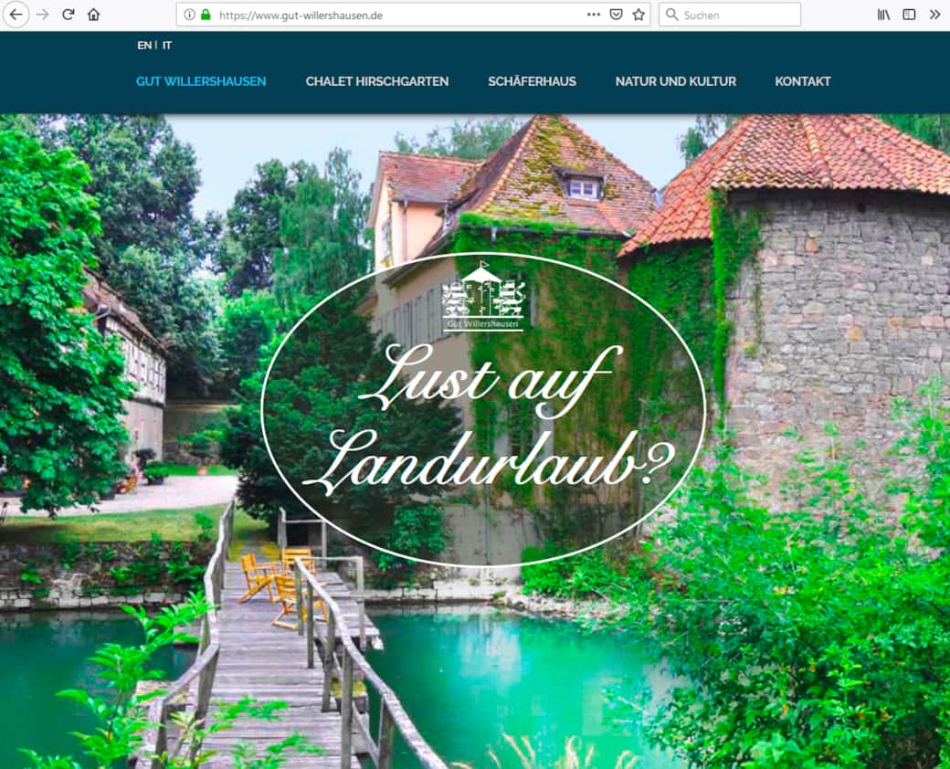 Statt Meer darf es auch mal Land sein? Ein Geheimtipp für Ruhesuchende, die gern schön und stilvoll wohnen möchten und die Natur lieben: Das Gut Willershausen bei Eisenach liegt eingebettet zwischen Wiesen und Wäldern, umgeben von einem riesigen Hirschgehege und jede Menge Obstbäumen. Das Gut Willershausen mit Wasserschloss bietet zwei Ferienhäuser: das Chalet Hirschgarten und das Schäferhaus. Beide für 6-8/9 Personen.